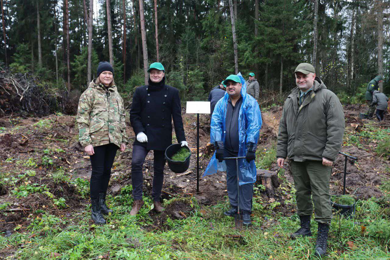 Вместе с первым заместителем министра лесного хозяйства Андреем Карасем и сотрудниками дипмиссии он создавал лесные культуры в Заславльском лесничестве.