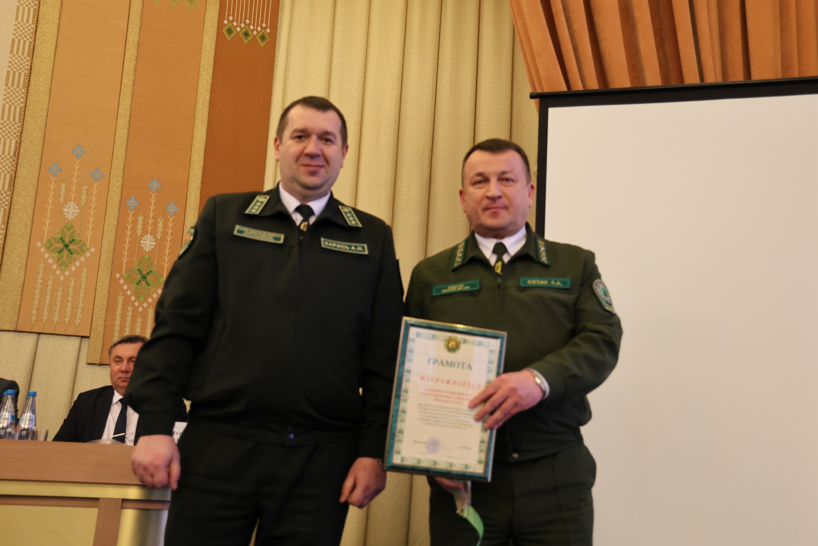 На итоговой коллегии Минского ГПЛХО Диплом победителя директору Минского лесхоза Андрею Алексеевичу Козаку вручил первый заместитель Министра лесного хозяйства Андрей Новолаевич Карась.